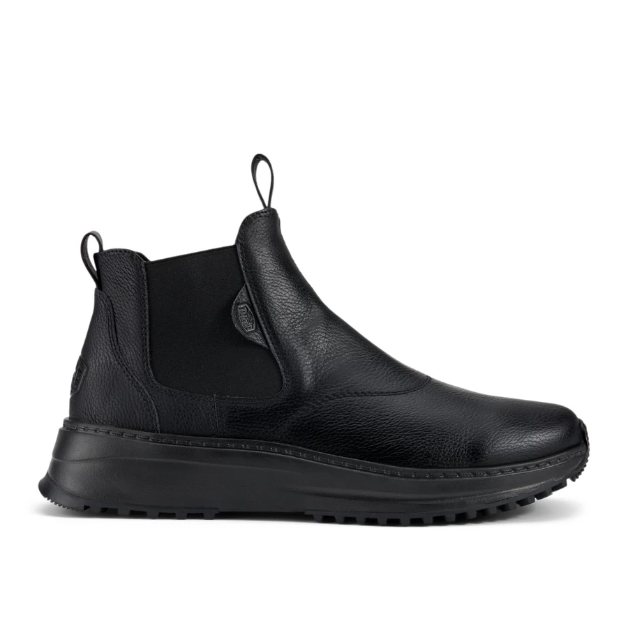 A hagyományosan fűző nélküli Chelsea csizma most még kényelmesebb lett. Tartós műbőrből készült, oldalt rugalmas betéttel, így ezek a bebújós csizmák leveszik a mindennapi rohanás terhét: gyors fel- és levétel, nincs macera. A talp könnyű és rugalmas, „fogazott” gumis tapadással, hogy egész nap kényelmes legyen a járás.
